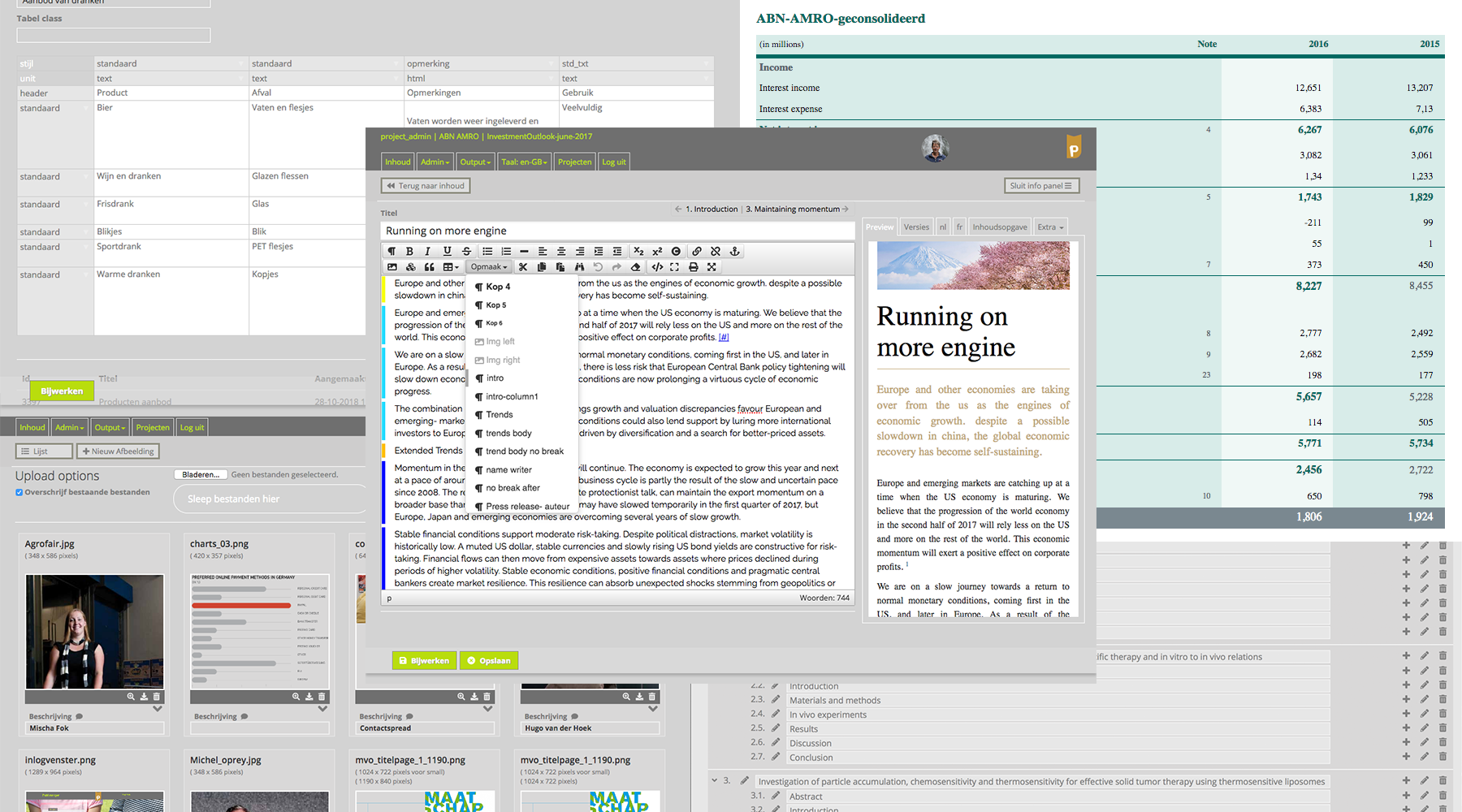 Door stijlsheets te koppelen aan het document krijgen de content editors een goed beeld van hoe de publicatie eruit zal gaan zien. Het is daarnaast mogelijk om het verslag als website te publiceren of direct een PDF van het het verslag te genereren.